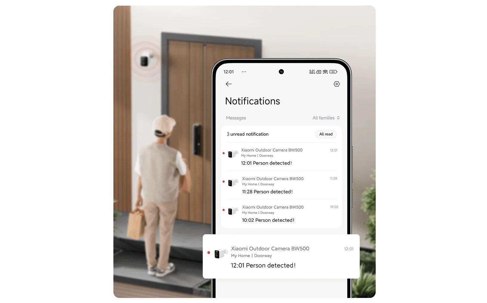 Когда человек или транспортное средство входит в контролируемую зону, немедленно срабатывает звуковой сигнал тревоги и включается белый свет. Помимо того, что приложение Xiaomi Home напугает незваных гостей, оно как можно скорее отправит владельцу предупреждающее сообщение, чтобы он мог оценить любой риск.