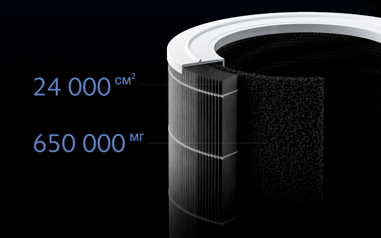 Очиститель воздуха Xiaomi Smart Air Purifier 4 Pro оснащен системой тройной фильтрации, в которую входит фильтр предварительной очистки, высокоэффективный фильтр Xiaomi и высококачественный фильтр с активированным углем — их совместная работа обеспечивает чистоту и свежесть воздуха в вашем доме.