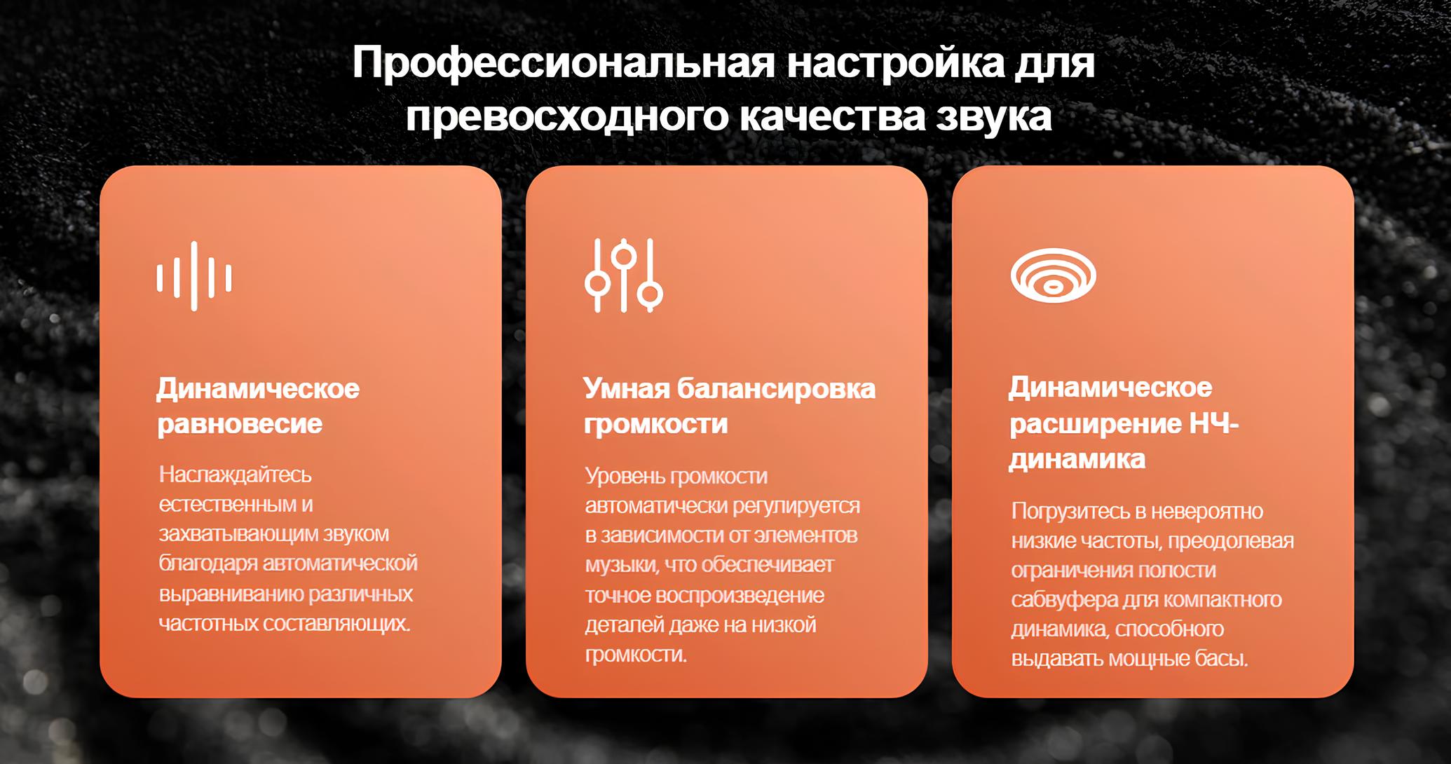 Особенности, дополнительнодинамическое равновесие, умная балансировка громкости, динамическое расширение низкочастотного динамика, возможность создания стереопары (TWS)